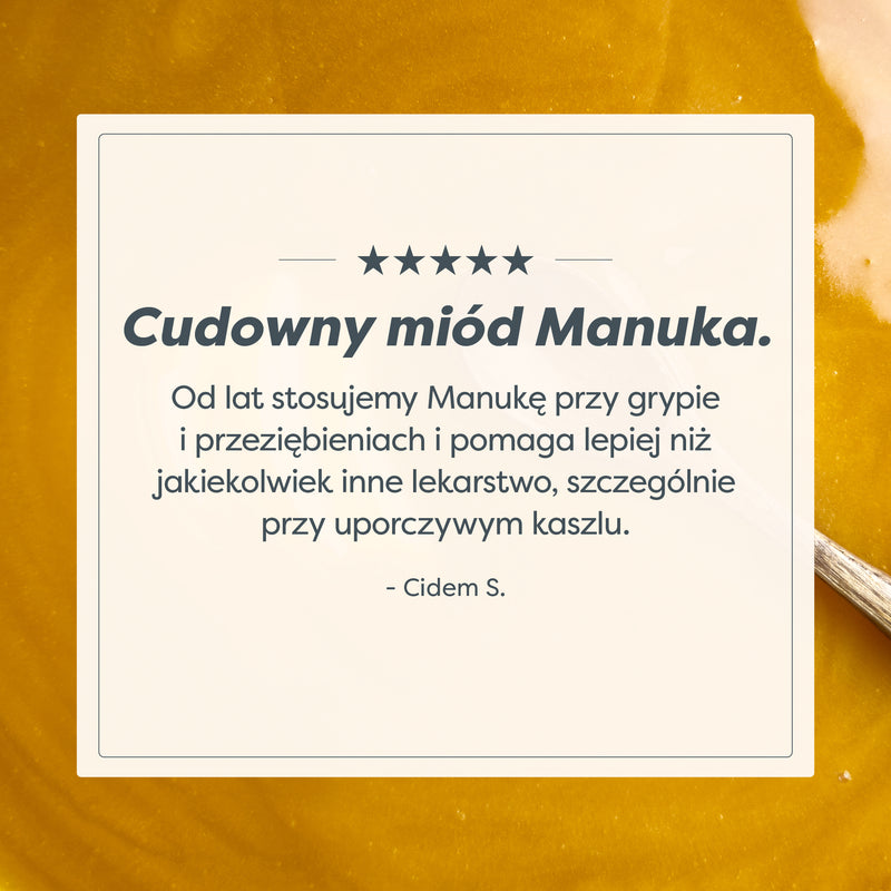 Aż 82% naszych klientów stwierdziło, że miód Manuka pomaga im w ich dolegliwościach zdrowotnych (badanie klientów, grudzień 2024)!