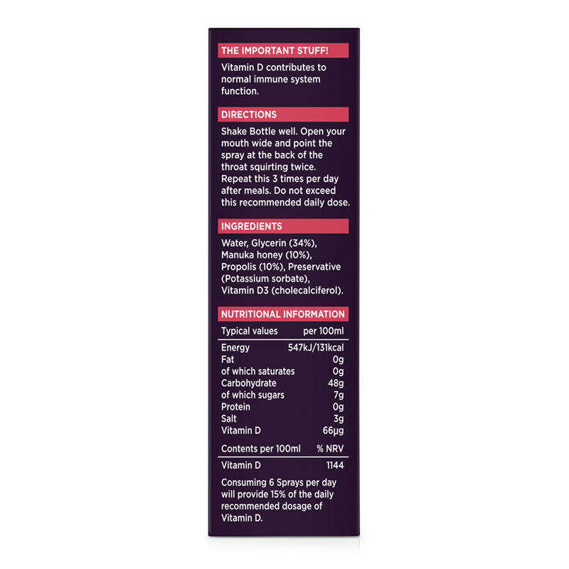 Spożycie 6 rozpyleń dziennie zapewnia 15% zalecanego dziennego spożycia witaminy D.