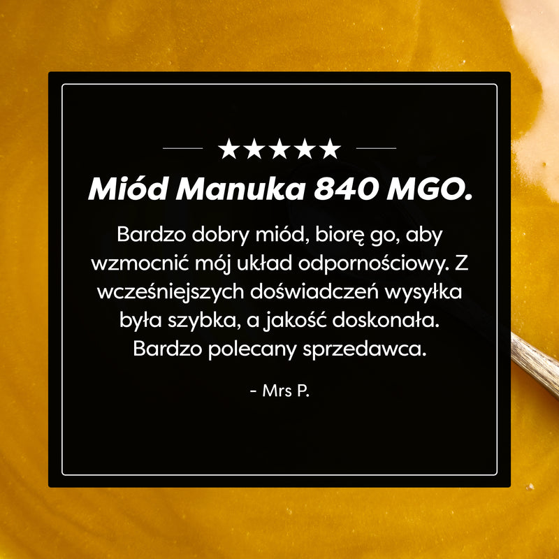 Aż 82% naszych klientów stwierdziło, że miód Manuka pomaga im w ich dolegliwościach zdrowotnych (badanie klientów, grudzień 2024)!